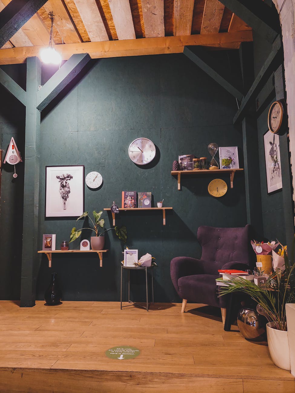 - Akustik-Raumteiler mit Algenflachzellen; reduziert Hall und setzt Fokus.